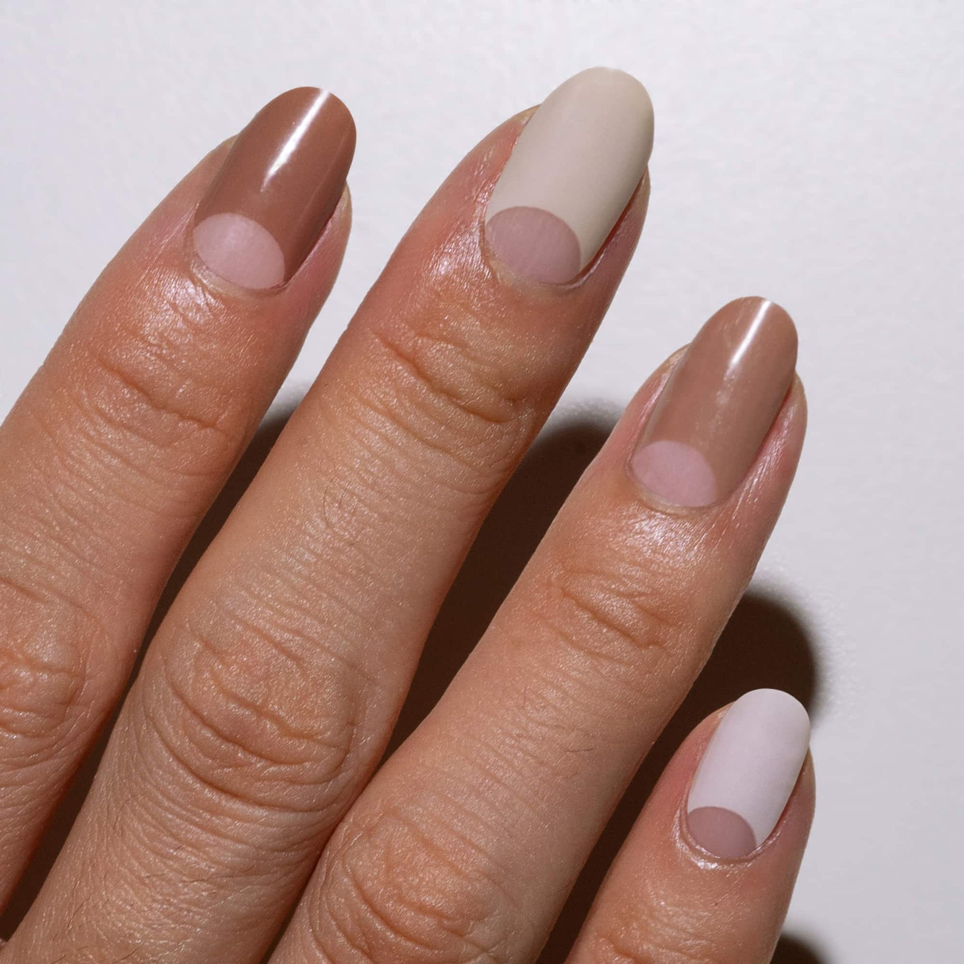This rich chocolate brown half-moon design is absolute perfection for fall. Soft, warm browns and negative space curves create the perfect moody autumnal look.